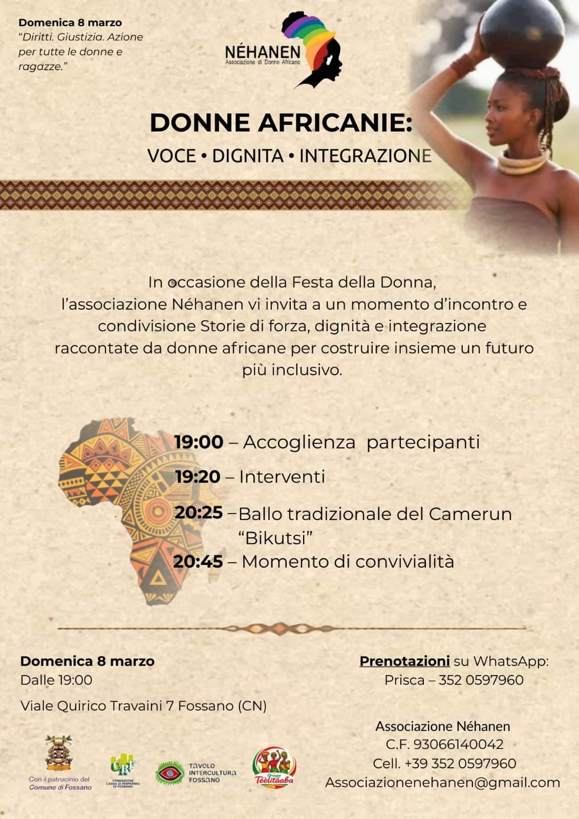 In occasione della Giornata Internazionale della Donna, l’associazione Néhanen – Associazione di Donne Africane propone un momento di incontro e condivisione dedicato ai temi della voce, della dignità e dell’integrazione.