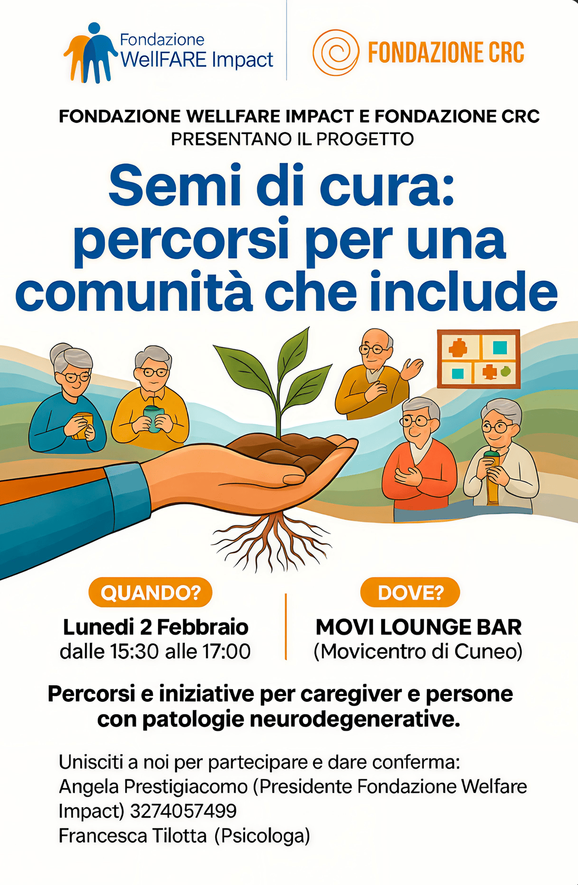 Fondazione Wellfare Impact, in collaborazione con la Fondazione CRC, presenta “Semi di cura: percorsi per una comunità che include”, un’iniziativa rivolta a caregiver, famiglie e persone che vivono situazioni legate a patologie neurodegenerative.